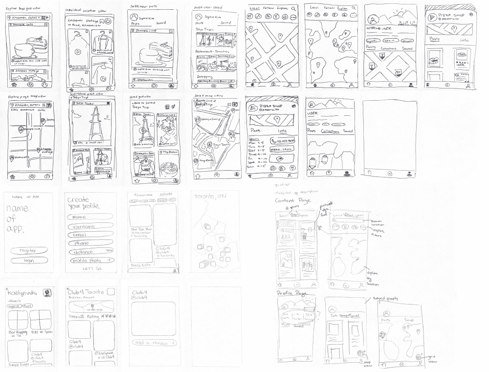We narrowed down our iterations on our feed since it was going to be our primary feature. We explored various feed layouts like the infinite scroll, masonry layout, and in our case a map view through our sketches.